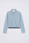 Elevate your casual wardrobe with this refined long sleeve button-down, featuring a striking blue stripe pattern that adds visual interest to any ensemble. The cropped silhouette offers a modern, flattering fit, while the innovative bungee waist provides adjustable comfort and a polished finish. Perfect for layering or wearing solo, this versatile piece transitions seamlessly from weekend outings to relaxed office settings. The quality construction and thoughtful design details make it a wardrobe essential for those who appreciate both style and functionality.