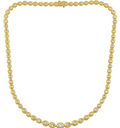 Elevate your elegance with the Maven Diamond Tennis Necklace, featuring 6 carats of exquisite oval and pear-shaped diamonds. Set in 22 grams of lustrous 14K yellow gold, this 17" necklace is detailed with delicate beaded bezels, highlighting G color and VS2 clarity stones for exceptional brilliance. A refined statement piece designed to captivate with understated sophistication.