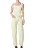 The Arc Jean in lemon zest yellow combines vintage charm with modern comfort. This mid-rise, wide-leg style features rigid regenerative cotton denim with a soft hand feel and maintains its sculpted shape all day. Style it casually with a tee and sandals, or dress it up with a tailored jacket for refined everyday wear.