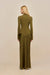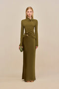 The Callie Top offers a sophisticated silhouette with its long sleeves and elegant ruched detailing at the neck and hemline, enhanced by subtle gold-toned hardware. Crafted from a comfortable knit blend, this top combines refined style with a flattering fit, making it a standout piece for any polished wardrobe.