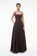 The Joy Maxi Dress balances structure with graceful movement. A fitted bodice flows into an elegant a-line skirt, creating a flattering silhouette for any occasion. Practical hidden side pockets and a discreet back zipper add refined functionality. Understated and versatile, this piece transitions seamlessly from formal events to refined everyday wear.