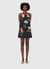 The Leia Embroidery Mini Dress features a black base with colorful floral embroidery. Its square neckline and thin straps offer a graceful look, while the A-line shape ensures a comfortable fit. This dress adds a refined, botanical touch to any outfit.