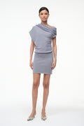 The Mabel Mini Dress redefines elegance with its innovative sweater dress silhouette, crafted from luxuriously soft merino wool. Featuring an asymmetrical off-the-shoulder design and graceful draping, it effortlessly combines comfort and style. Perfectly suited for pairing with boots, this dress brings a refined yet relaxed charm to your wardrobe.