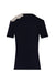 This navy short-sleeve t-shirt features a boxy fit and a classic crew neck for comfortable wear. White floral appliqués add a subtle, elegant detail, making it a versatile piece for both casual and refined looks.