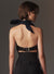 Satin Halter With Back Leather Strap