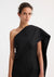 This short wool blend dress combines structured design with graceful fluidity. Its asymmetric sash elegantly drapes over the shoulder, creating a striking silhouette perfect for evening occasions that demand understated sophistication and refined drama.