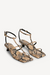 The Teva Sandal features a seasonal snake-embossed design crafted from soft goat leather. Its squared toe and low heel offer comfortable elegance, while the ankle buckle ensures a secure fit. Perfect for adding subtle contrast to feminine and bohemian styles.