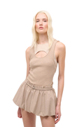 A sporty two-tone layered rib knit tank with a sleek neckline opening. The connected design delivers a modern silhouette perfect for active wear and everyday styling.